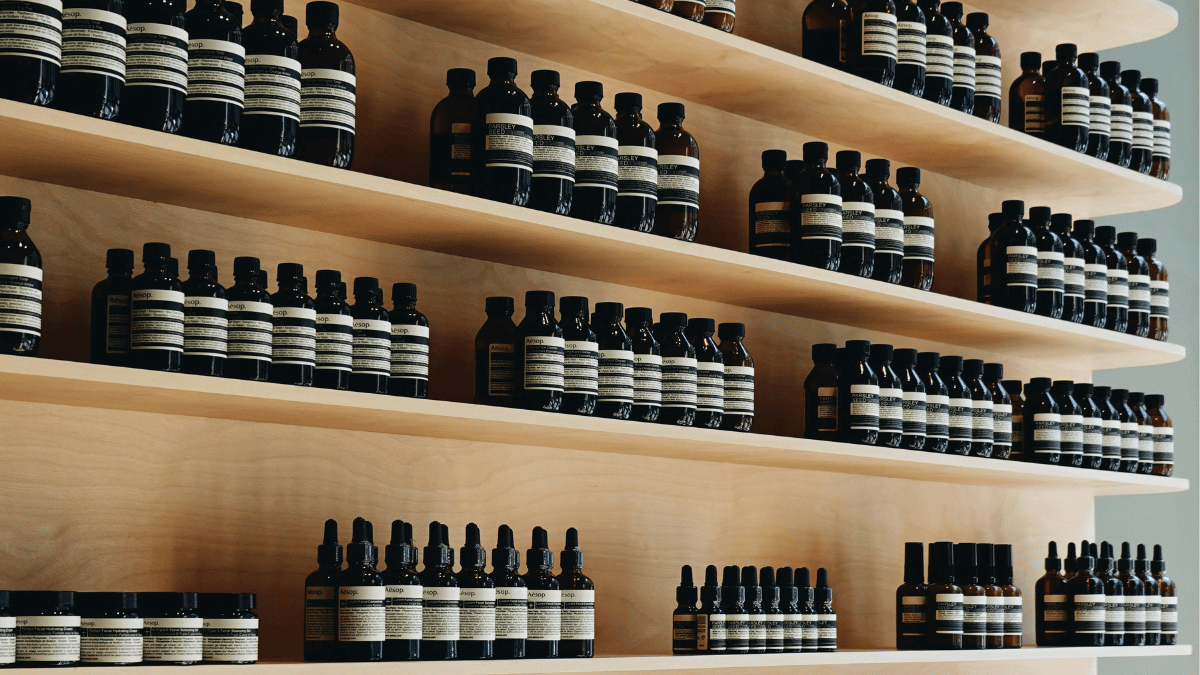 Shelves stocked with rows of identical products, illustrating make-to-stock manufacturing and inventory held for immediate shipment.